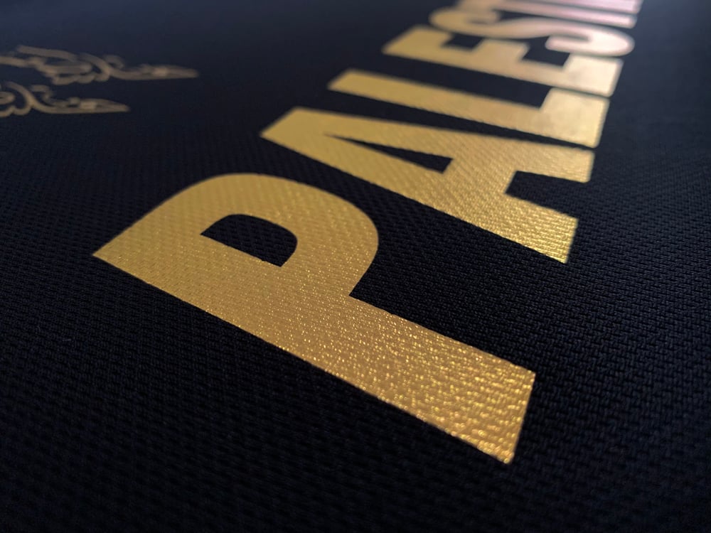 Regular fitting men's Palestine football shirt with heat pressed logos. The anniversary shirt has been launched to celebrate 5 years since FC Palestina was officially established.
